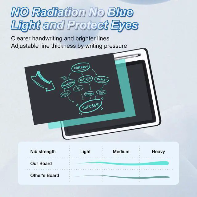 Unique Design & Brighter Thick Lines: The new generation of flexible 10 inch LCD screen, the writing and drawing lines on it are very brighter and more thickness. The screen of doodle board with monochrome blue-green handwriting and a striking clear display, providing enough space for graffiti.