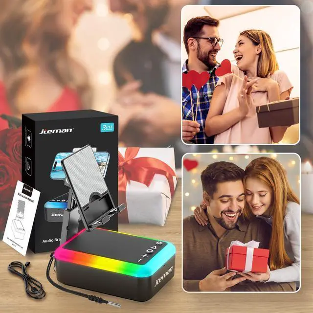 Big Stereo SoundOur phone stand with speaker is loud and clear, built-in 45W Power Speaker, provide HD stereo surround sound, allowing you to fully enjoy the pleasure of music. Upgraded Bluetooth 5.3, without any delay. The cool gadget is a great gift for him husband. NOTE: Not a Power Bank