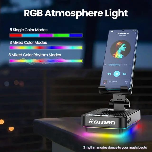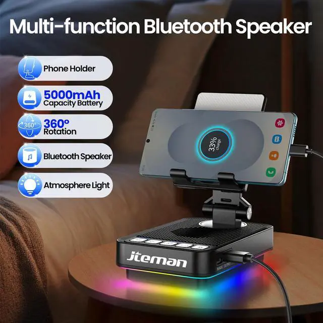 JTEMAN Phone Stand Speaker with Lights