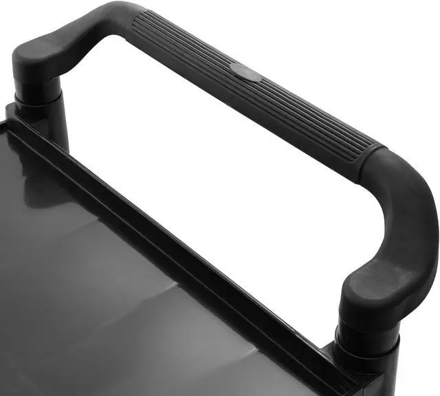 The dual molded ergonomic handles on each end of the cart make for easy handling and ensure sturdy transport. The cart measures 38-1/2 high (top of handle to floor) x 40-1/4" wide (side to side) x 19-1/2 deep (front to back). Shelves measure 31" x 19-1/2". Minor assembly is required, with only a rubber mallet, and instructions are included.