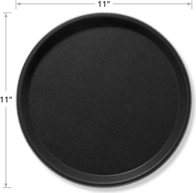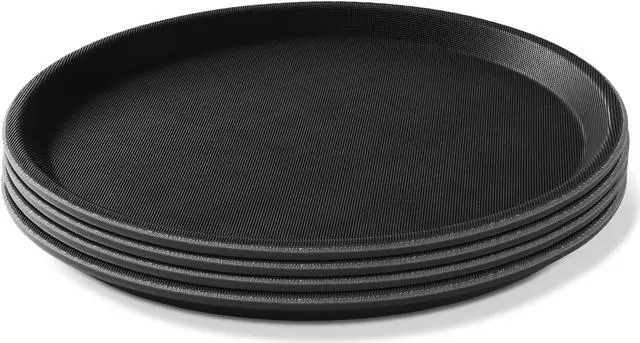These commercial-grade round serving trays by Jubilee are a must-have for any restaurant, bar, coffee shop, hotel, or catered event. Constructed of heavy-duty, BPA free plastic, these foodservice trays are designed for high-volume use and are built-to-last. The raised edges and non-skid grip surface provide hassle-free transport of drinks, appetizers, entrees, and desserts. Serve with confidence, these restaurant serving trays prevent slipping and spilling while carrying meals from the kitchen to the table.