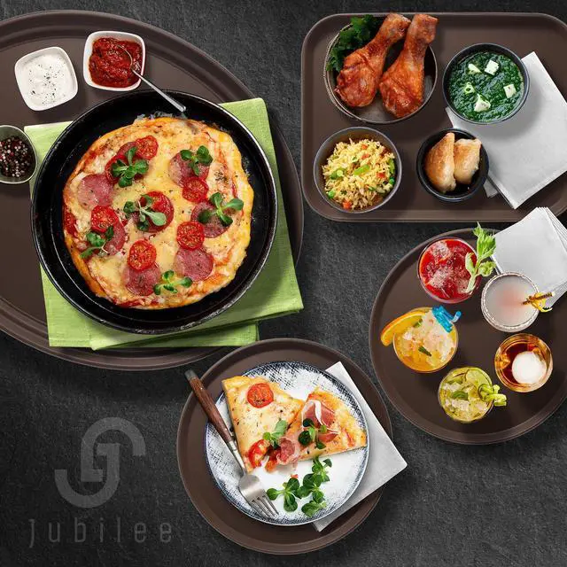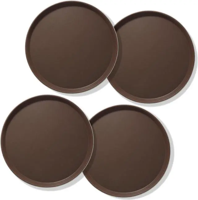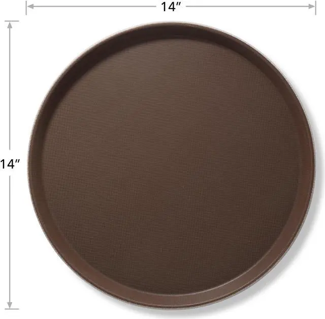 These commercial-grade round serving trays by Jubilee are a must-have for any restaurant, bar, coffee shop, hotel, or catered event. Constructed of heavy-duty, BPA free plastic, these foodservice trays are designed for high-volume use and are built-to-last. The raised edges and non-skid grip surface provide hassle-free transport of drinks, appetizers, entrees, and desserts. Serve with confidence, these restaurant serving trays prevent slipping and spilling while carrying meals from the kitchen to the table.