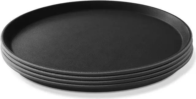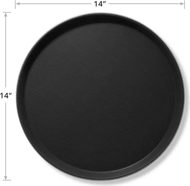 These commercial-grade round serving trays by Jubilee are a must-have for any restaurant, bar, coffee shop, hotel, or catered event. Constructed of heavy-duty, BPA free plastic, these foodservice trays are designed for high-volume use and are built-to-last. The raised edges and non-skid grip surface provide hassle-free transport of drinks, appetizers, entrees, and desserts. Serve with confidence, these restaurant serving trays prevent slipping and spilling while carrying meals from the kitchen to the table.
