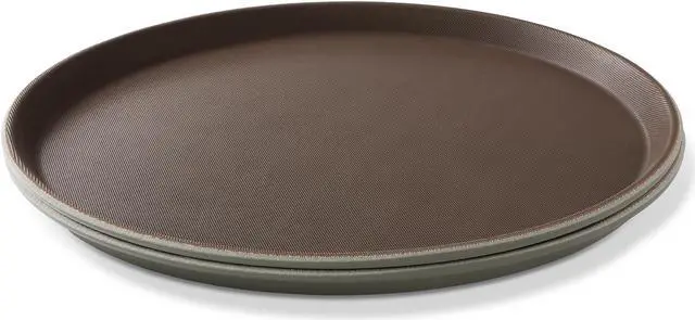 These commercial-grade round serving trays by Jubilee are a must-have for any restaurant, bar, coffee shop, hotel, or catered event. Constructed of heavy-duty, BPA free plastic, these foodservice trays are designed for high-volume use and are built-to-last. The raised edges and non-skid grip surface provide hassle-free transport of drinks, appetizers, entrees, and desserts. Serve with confidence, these restaurant serving trays prevent slipping and spilling while carrying meals from the kitchen to the table.