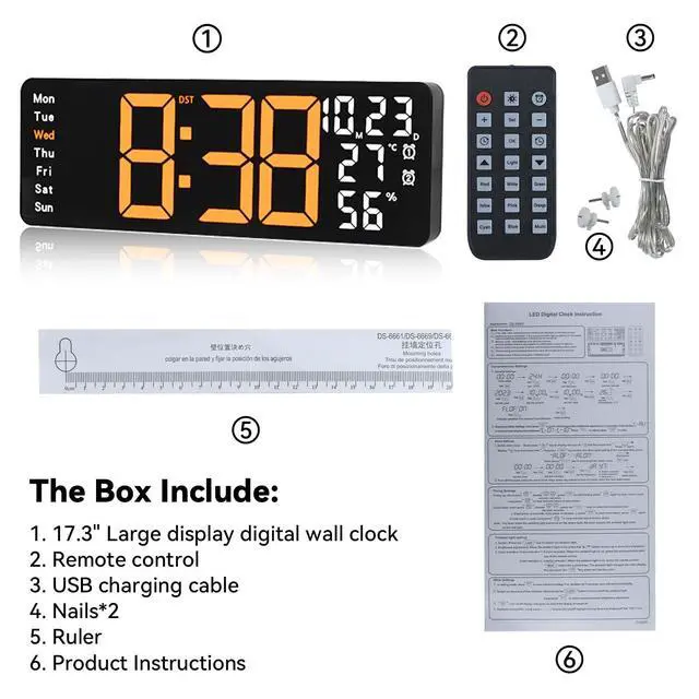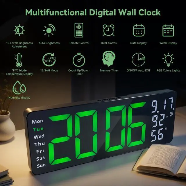 17.3" Digital Wall Clock with RGB Color Remote Control for Home Decoration