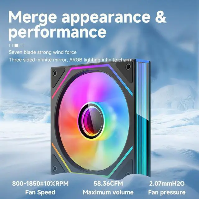Multiple versions are available: 120 mm ARGB Black forward fan /120 mm ARGB Black Reverse fan /120 mm ARGB White Forward fan /120 mm ARGB white reverse fan, four versions can be combined to freely manage the air flow inside the chassis.