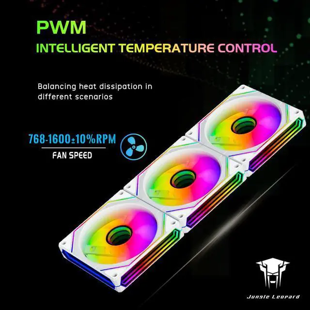 Jungle Leopard Prism6 PRO ARGB X3 Reverse Blade PC Case Fan,Infinite Mirror Light Effect Design Cooling Fan, 120mm CPU Fan PWM 1600RPM 2MMH20 HDB Bearing for PC Fans(White-3Pack)