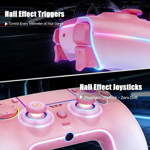 (7)Press and hold the L3 and R3 joysticks for 3 seconds to turn the RGB lights on or off. The lighting settings are saved automatically, so your preferences will be remembered next time you use the controller.