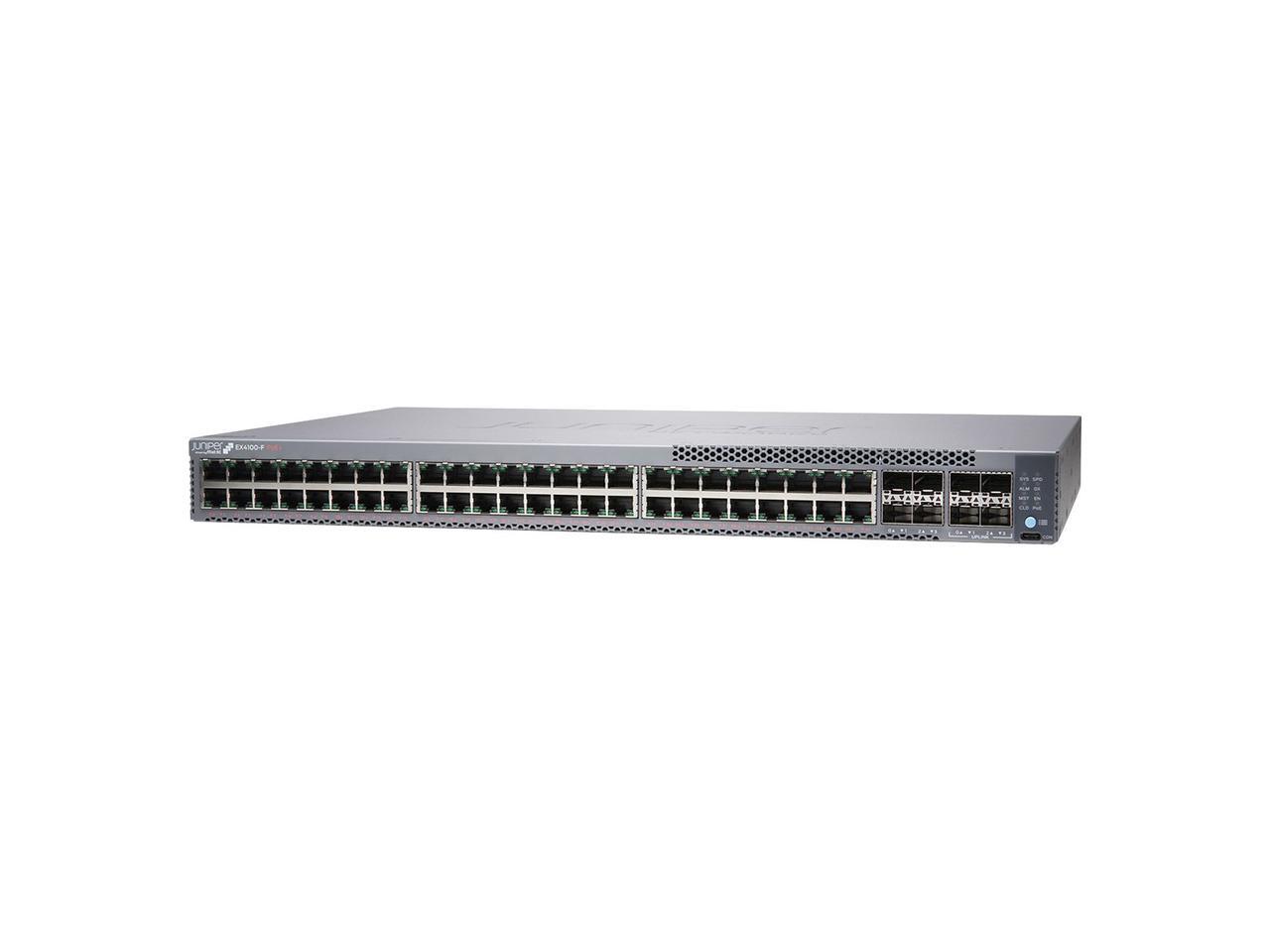 Juniper Networks EX4100 Switch, 48-port 10/100/1000BASE-T PoE+ switch, 4x1GbE/10GbE SFP/SFP + uplinks, 4x10GbE stacking/uplink ports | EX4100-F-48P