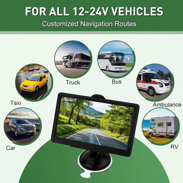 Configurable Truck Navigation Solutions: Engineered for all 12-24V vehicles, this system adapts to 7 travel modes (Truck, Car, Bus, Pedestrian, Taxi, Bicycle, Emergency). Customize routes according to your vehicle's weight and dimensions (length/height/width) to bypass restricted roadways.