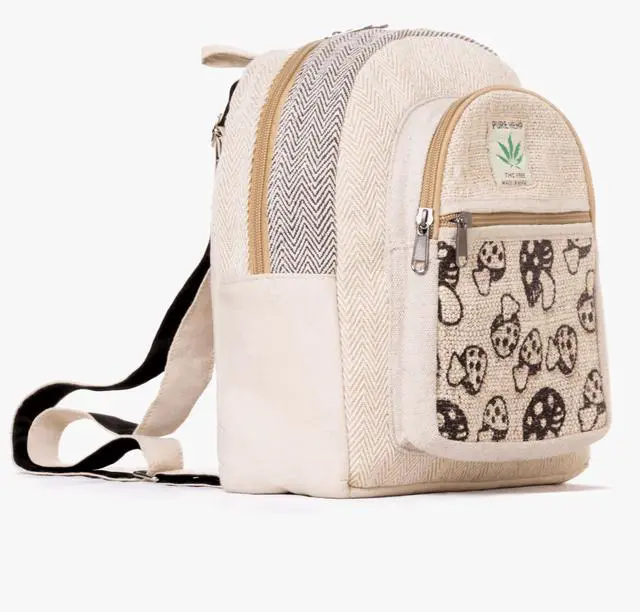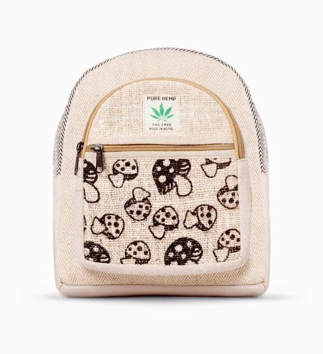 Kathmandu Collection Mini Hemp Mushroom Backpack - 10" Handmade Cotton and Hemp Boho Bag from Nepal | Eco-Friendly and Festival Ready