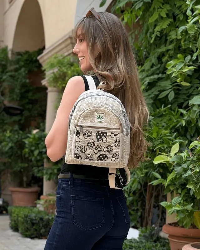 Small in size, big on style and purpose - this handmade 10" Hemp Mushroom Backpack is the perfect everyday carry for adventurers, students, and free spirits alike.