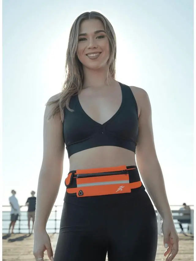 Many people use this Waist Pack as a Money Belt as well as it stays tight to your body and won't rip or tear to keep your belongings safe when traveling. Moreover, this Waist Pack has a reflective strip on the front of the pack to provide you with the comfort of knowing you will be seen at night. This running belt comes with a holster that will fit most smaller water bottles to allow to bring a a drink for those long runs. This has been one of the favorite features of our waist pack, because most waist packs that have water bottle holsters are very large and bulky where our waist pack is still small and sleek.