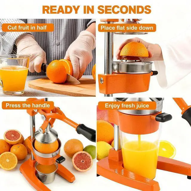 | Included Components | 304 Stainless Steel Juice Cup, Juicer Press Body, Removable 304 Stainless Steel Strainer |