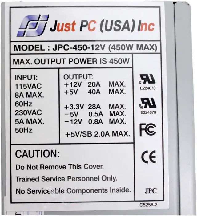 JUST PC JPC767P-WHITE White Steel ATX Mid Tower Computer Case 450W Power Supply