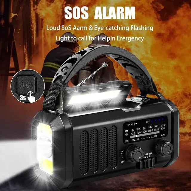 Emergency Weather Radio 20000mAh NOAA/AM/FM with 74000mWh USB/Solar/Hand Crank Charging, Battery Operated, SOS Alarm & Flashlight for Indoor/Outdoor Emergencies (Black)
