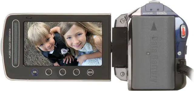 Laser Touch OperationThe JVC Everio GZ-HM200 digital camcorder features innovative Laser Touch operation - simply glide your finger up or down the touch-sensitive scroll bar next to the LCD screen and select the desired menu item.