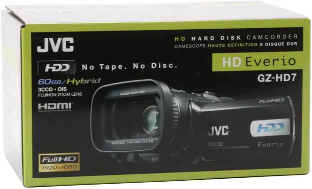 The JVC Everio GZ-HD7US lets you keep shooting, with nothing to load, eject or finalize. This camera can record your video and stills onto the 60GB hard disk drive or an SD/SDHC Memory Card. The hard drive stores up to 5 hours of full HD video. With Everio’s 10X Optical and 200X Digital Zoom, you’ll be able to bring the action in close, without having to go out on a limb! Full HD 1920x1080i recording in 16:9 widescreen aspect lets you shoot video that’s worthy of your HDTV!
