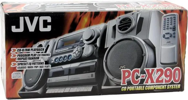 | Features | 5-preset EQ patterns (Flat/ Rock/ Jazz/ Pop/ Classic) Hyper Bass Sound System Volume Jog Control Digital Tuner Dual Cassette CD Synchro-Start Recording Bass-Reflex Design Speakers Detachable Speakers |