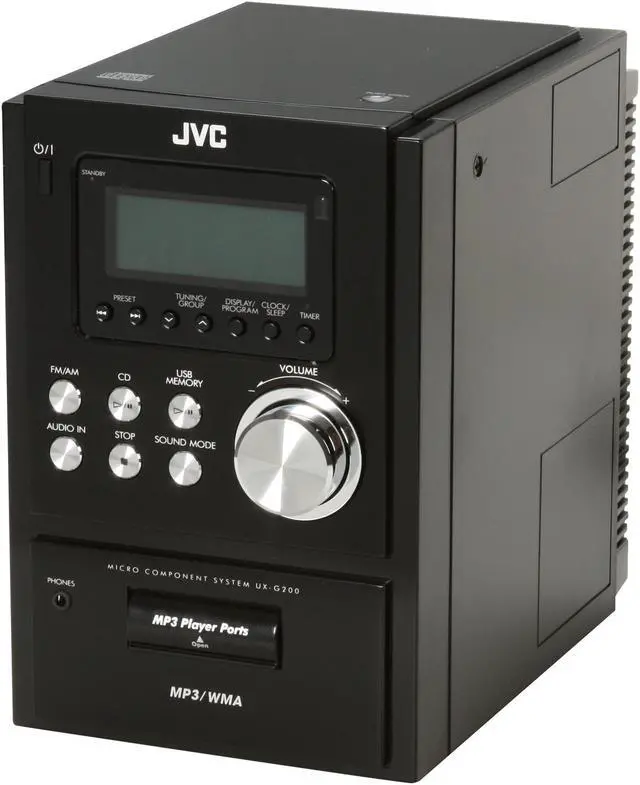 When the space is cramped, it's tough finding room for everything, let alone a fully functioning micro component system. JVC's shelf system, model# UXG200, fits the bill. Taking up a minimum of space, the 3-piece micro system still has the power and features that you need.