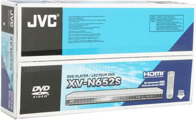 The slim-profile JVC XV-N652S 1080i-upconverting DVD player offers the latest advances in digital entertainment with DivX support and HDMI output! The player is compatible with a wide range of disc and digital formats, including DVD, DVD-R, DVD-RW, DVD+R, DVD+RW, VCD, SVCD, CD, CD-R, CD-RW, MP3, and JPEG. You can choose among several visual effects and add music to enhance your photo slide show, or select an image and save it to the player as a custom start up or screen saver.