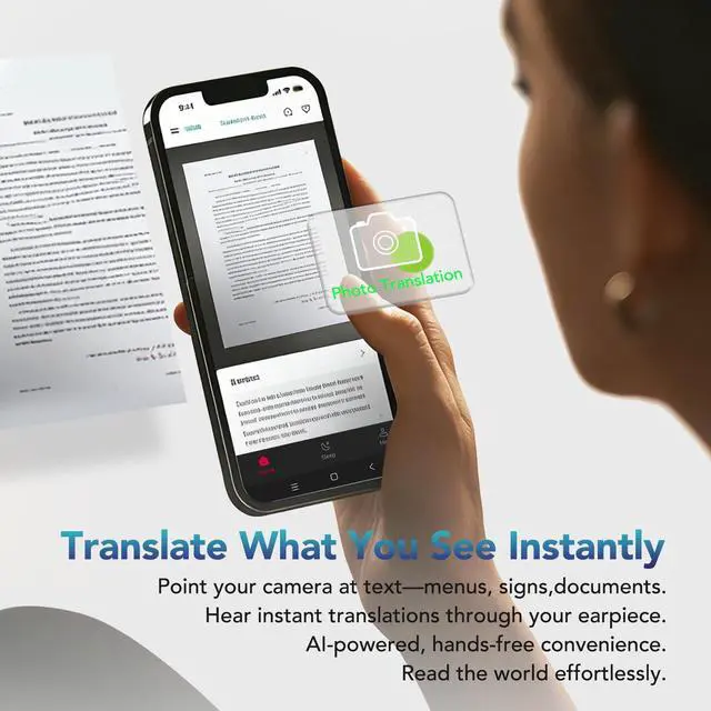 Two-way voice translation for negotiations or global travelers. Wear headphones one for the other person to hear.