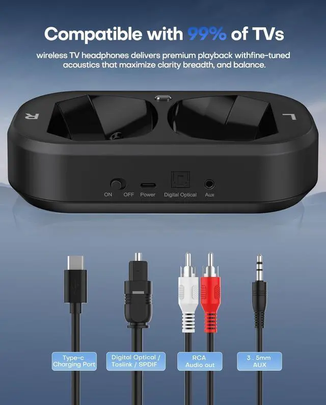 In addition to the easy charging feature, the TV transmitter offers a smart headphonestorage solution, enhancing your overall entertainment experience