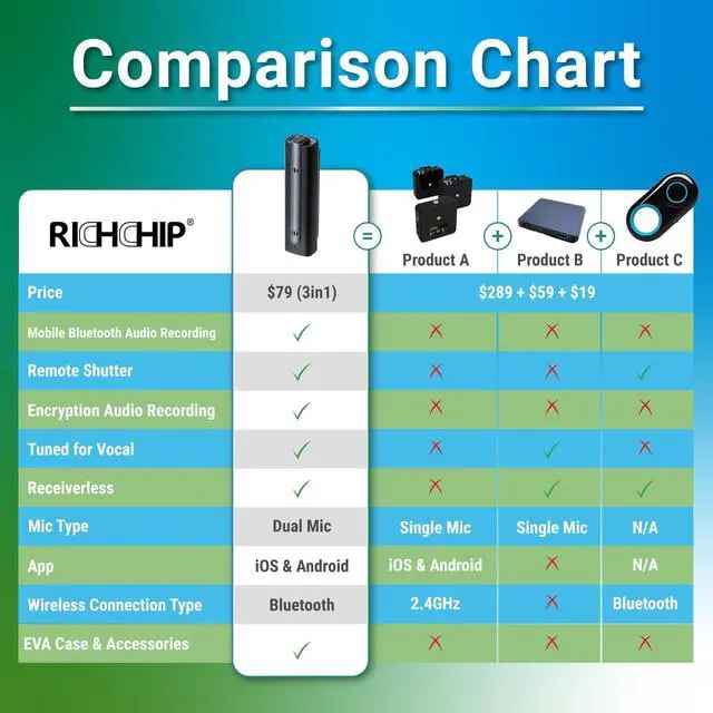 Vocal Microphone + Wireless Recorder + Remote Shutter