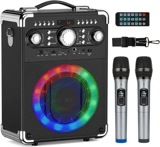JYX-S8 is a portable pa system karaoke speaker, built in DSP 5.0 technology delivers chest-thumping bass, well-balanced mids, and crystal-clear highs. This Bluetooth speaker equip with karaoke, recording functions, its a great choice for having fun. This karaoke machine for adults support connecting at least 2 microphones at the same time, perfect for gatherings with your family and friends. In addition, karaoke speaker singing machine TWS function, let you enjoy a true wireless stereo when you get two speakers. This rechargeable portable speaker with mics is excellent for picnic, party, teaching and family entertainment, best gifts for music lover.