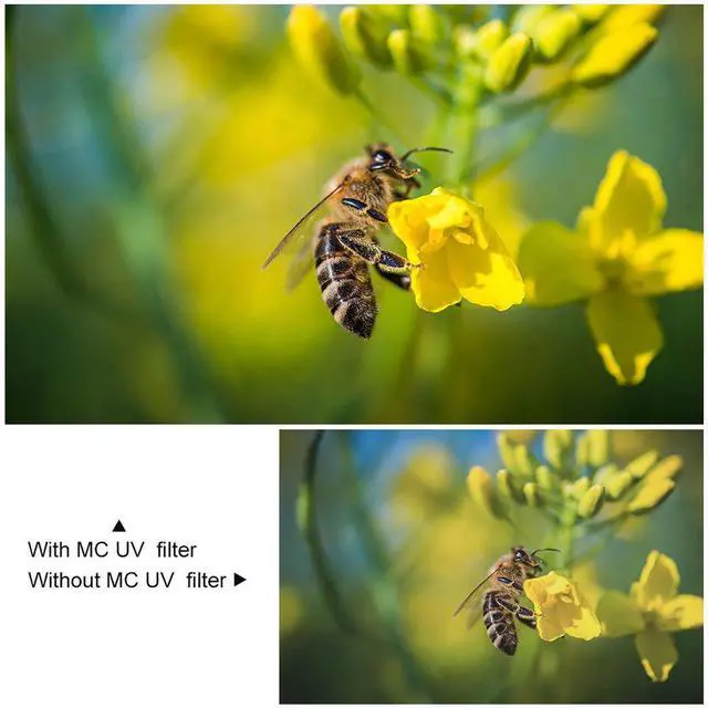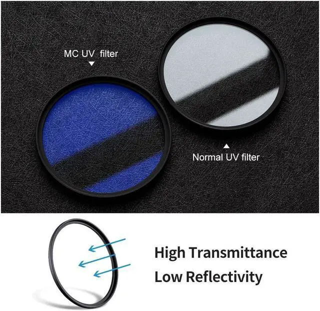 - Anti-Reflective Coating: Filter ultraviolet light, reduce filter surface reflection, prevents the harmful effect of UV rays, eliminates haze that can register a bluish cast from scenic shots.