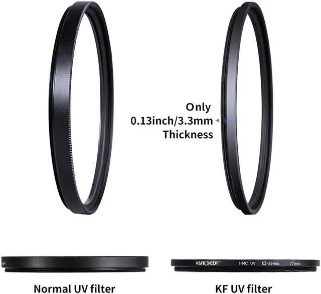- Super Slim: 0.13inch/3.3mm super slim frame, reduce impact on light, avoid dark corner for wide-angle shooting.