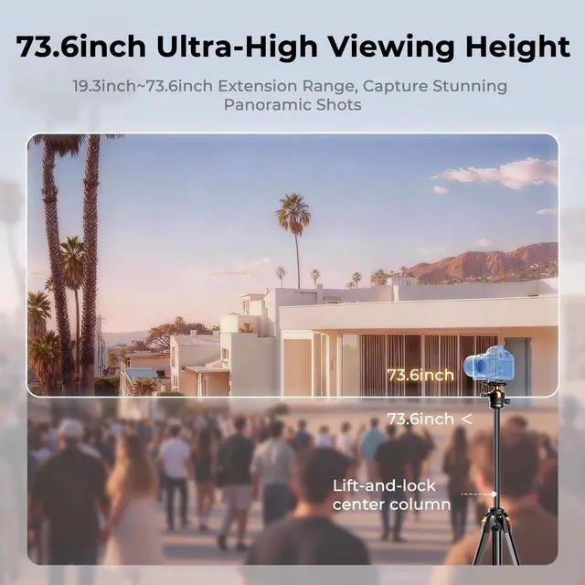 | Max Height 73" | Lightweight | Video Tripod | Compact |