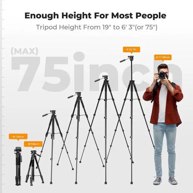 When choosing the height of the tripod, you can refer to the formula: tripod height ˜ height - 15cm - camera height. If you need to shoot with the legs apart, the height can be reduced by another 4-10cm. You can adjust it flexibly as needed.