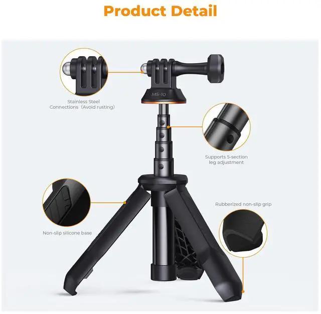 Action camera tripods vary in load capacity. Most support lightweight action cameras well, but if yours has extra accessories (mics, lights, etc.), ensure the total weight stays within the tripod's load-bearing range.