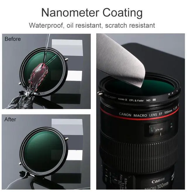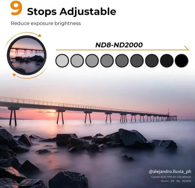 - Neutral density can be adjusted from nd8 to nd2000, easy to create different neutral density by rotating the ring.