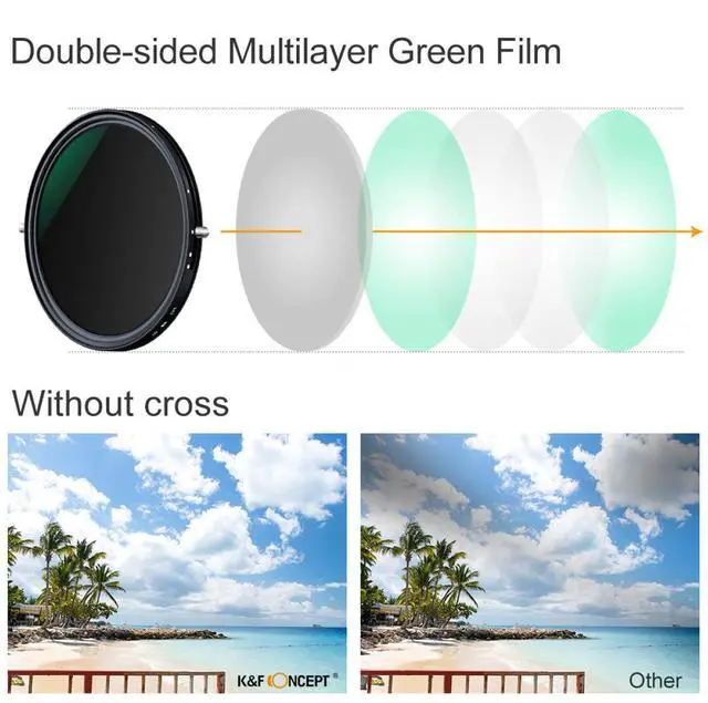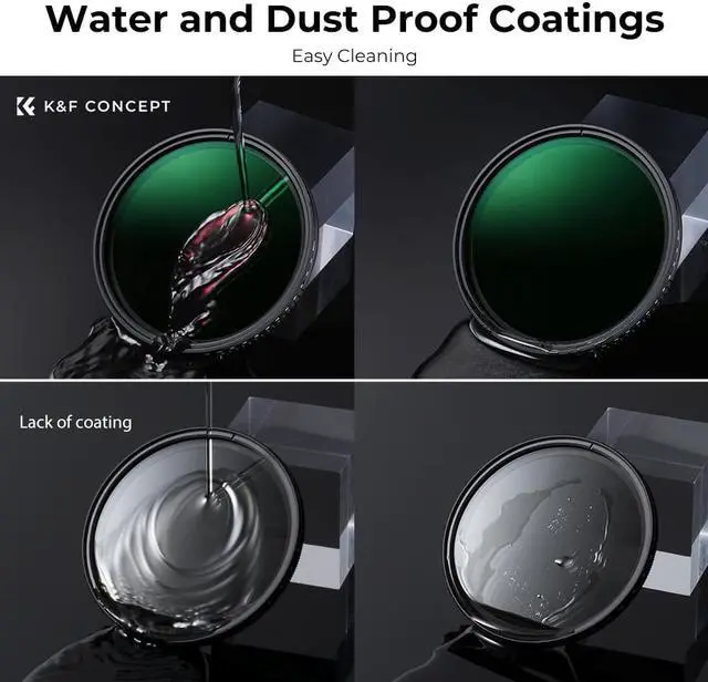 The K&F Concept filter is coated on both sides, reduction of scattering light.And more, we use the developed new nano coating layer technology,reducing lens flare and ghosting while making the filter water repellent, oil & dust resistant.