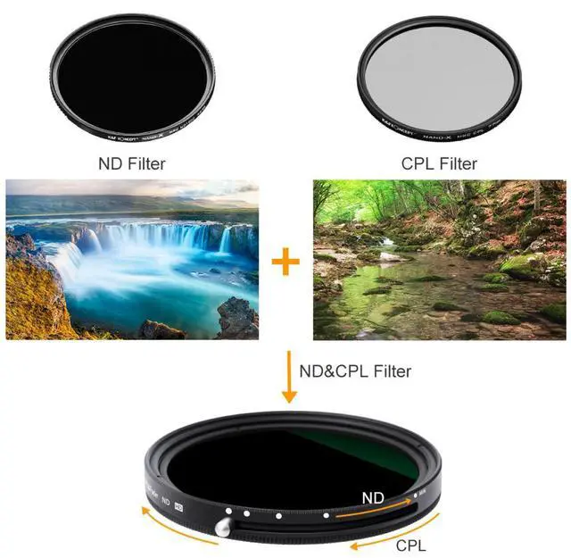 Proffessional K&F Concept variable neutral density filter combined with multi Range of grade nd filter which are money and time Saver, avoid of buying many pieces or carried many pieces different gear nd Filter