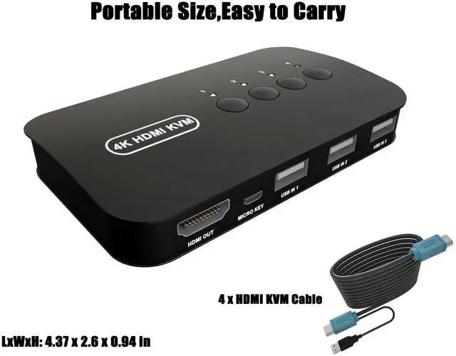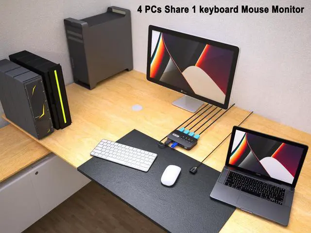 HDMI KVM Switch - 4 Computers share 1 keyboard video mouse. any desktop pc with hdmi output like laptop,gaming computer,office pc,network server computer,mini pc can share same keybord monitor mouse,cut costs and keep desktop room clean.