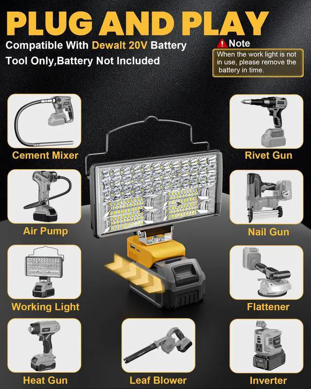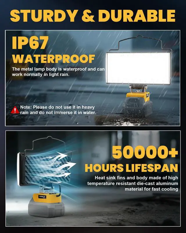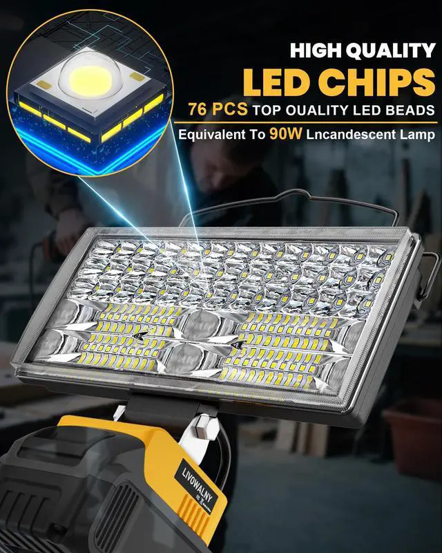 LIVOWALNY LED Work Light Compatible with Dewalt 20V Battery, Bright & Portable