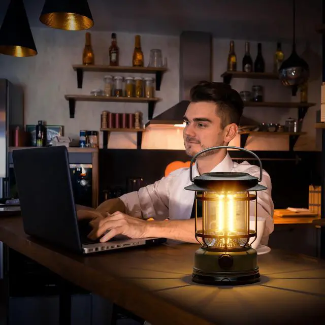 LED Solar Camping Lanterns,1500LM Step-Less Dimming,Retro Battery 2600mAH Powered USB Rechargeable Tent Lights,Portable Flashlight for Power Outages Emergency Hiking Hurricane 3Pack Green