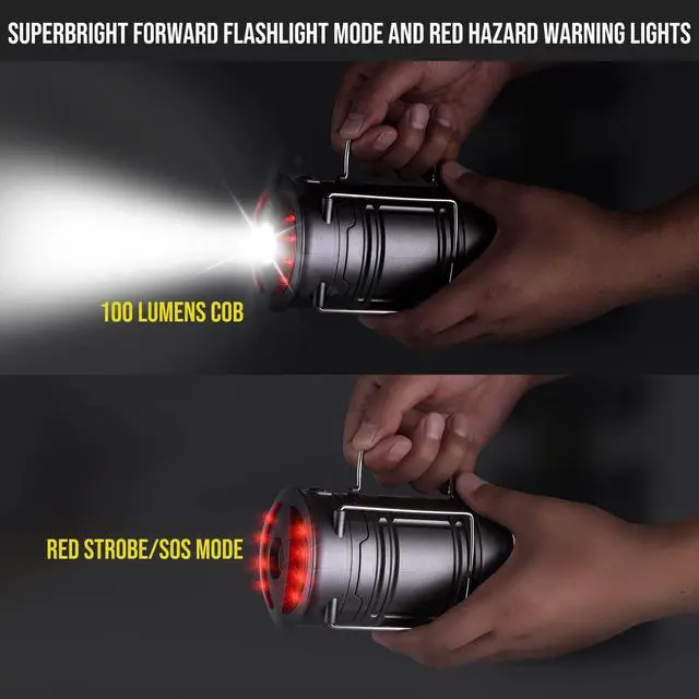 This Camping Lantern has 4 awesome light modes: 360 degree lantern mode, forward flashlight mode, and red strobe/SOS mode.