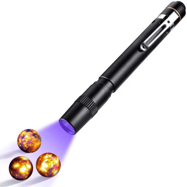 A2D Pen Blacklight 365nm UV Flashlight with Pen High Power Output, Pure Beam for UV Glue Curing Light, Rock and Mineral Fluorescent Glowing, Pet Urine Detector Light, AC Leak Detector