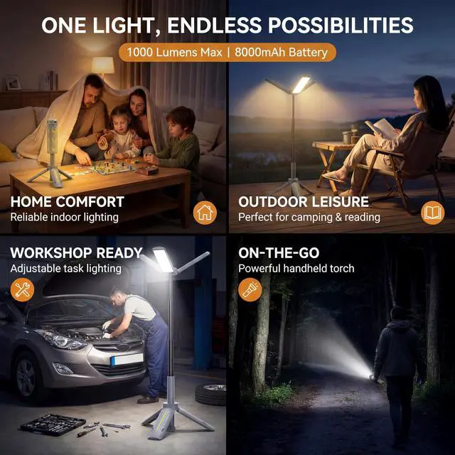 From cozy tent to full campsite. Adjustable outdoor light for adventure.