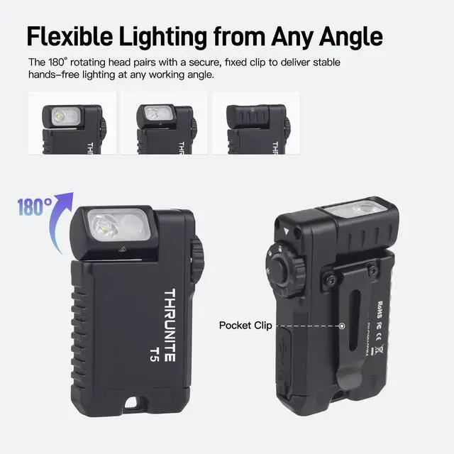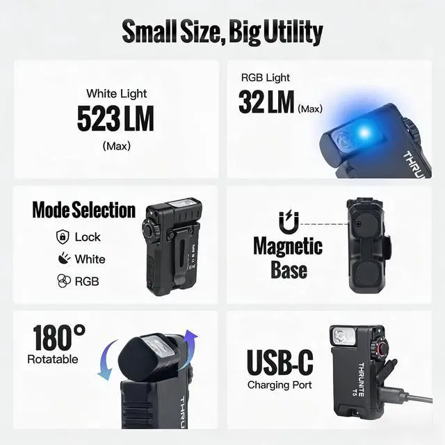 Absolutely. Despite its Zippo-like size, the T5 delivers a true 523-lumen beam reaching up to 272 ft (83 m). It’s not just a keychain light—it’s powerful enough for night hiking, dog walking, and searching large backyards.