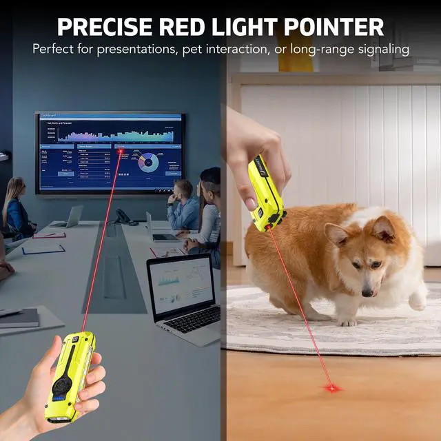 UV Light & Red Beam Mode Pro-Level EDC FlashlightBeyond everyday use, this EDC flashlight includes UV light for stain detection and fluorescent marking. Plus, the base-integrated red beam makes it a go-to for architects, teachers, and inspectors. The natural pointer-style grip ensures precision, while the flat design lets you play with pets safelykeeping bright beams away from sensitive eyes