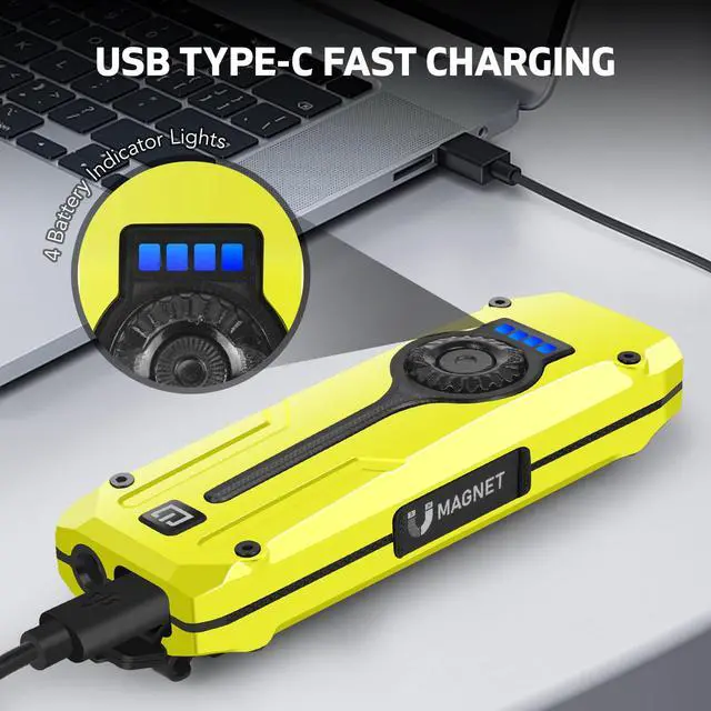 USB-C Fast Charging & Smart Power Indicator Always-Ready EDC FlashlightNo more power anxiety. This rechargeable EDC flashlight supports USB-C fast charging so your LED flashlight is always ready for camping, work, hiking, or emergencies. The 4-level power indicator clearly shows battery status and flashes during chargingso you're never left guessing