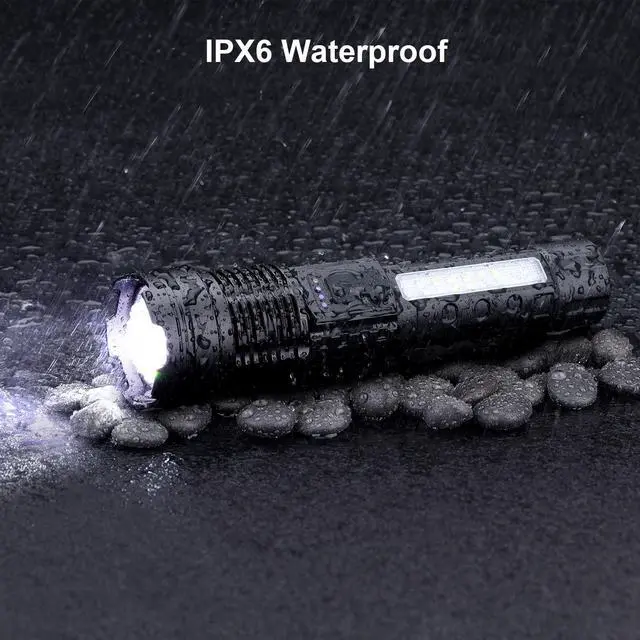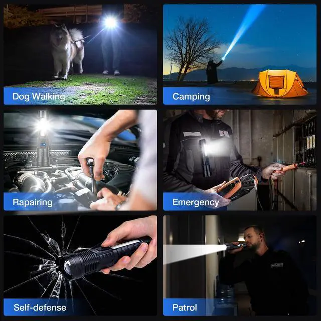 - Adjustable Focus: Flashlights rechargeable can adjust the head of flashlight to achieve the adjustable focus, long-distance observation as spotlight and wide-range lighting as floodlight.