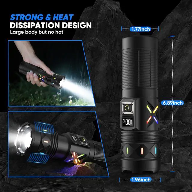 [ MULTIFUNCTIONAL 2-IN-1 USB C CHARGING & DISCHARGING ] The super bright LED flashlight long range is built-in 2 USB interfaces, one is USB C input for charging, the other is USB output for discharging such as it can charge your phone for emergencies. It supports various of USB devices such as smartphone, earphone, computer etc. It is convenient to get charged or discharged in indoor or outdoor activities as the USB C interface is universal that can be replaced.