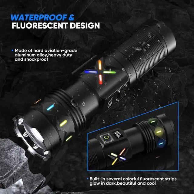Flashlights High Lumens 100000 Rechargeable, Super Bright 50W LED, Long Running 15 Hours, USB C Input & USB Output, Zoomable 3 Modes, Powerful Strong Flash Light for Home Hiking Camping