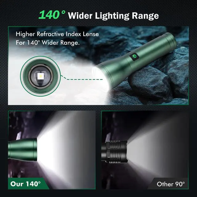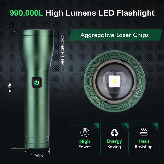 Rechargeable Flashlights High Lumens 990, 000L, 3 Modes Super Bright 140° Wider Beam LED Tactical Handheld Flash Light with USB C, Zoomable Beam, IP76 Waterproof